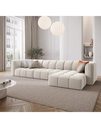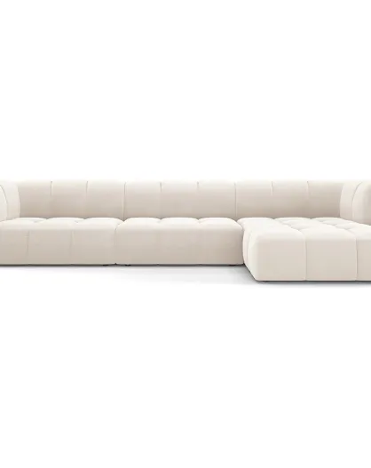 Canapé d'angle droit Modulaire Velours Adams 5 Places beige clair - 316x160x70 cm