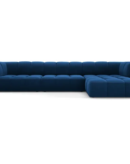 Canapé d'angle droit Modulaire Velours Adams 5 Places bleu roi - 316x160x70 cm
