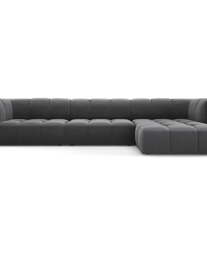 Canapé d'angle droit Modulaire Velours Adams 5 Places gris - 316x160x70 cm