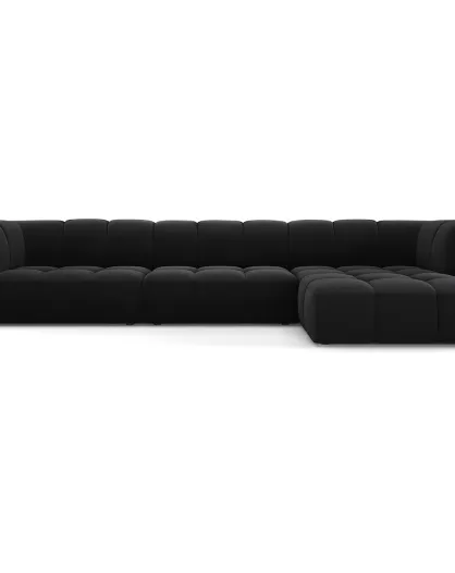 Canapé d'angle droit Modulaire Velours Adams 5 Places noir - 316x160x70 cm