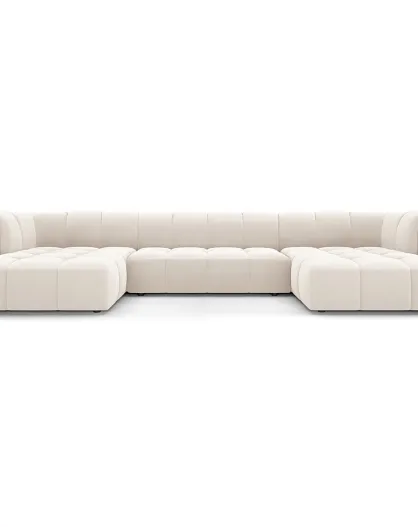 Canapé Panoramique Velours Adams 5 Places beige clair - 346x160x70 cm