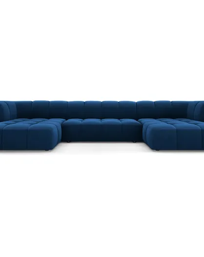 Canapé Panoramique Velours Adams 5 Places bleu roi - 346x160x70 cm