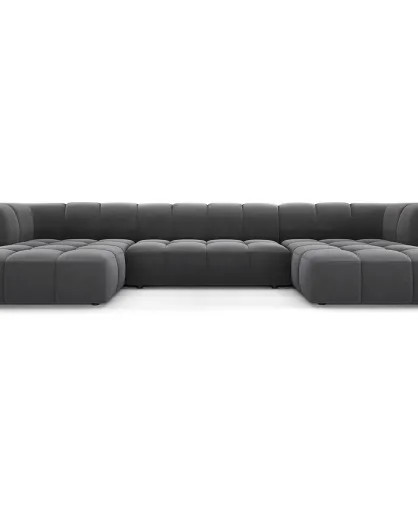 Canapé Panoramique Velours Adams 5 Places gris - 346x160x70 cm