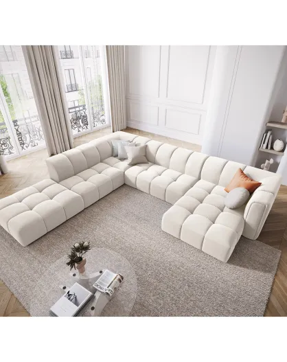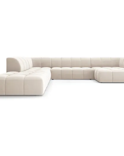 Canapé d'angle gauche Panoramique Modulable En Velours Adams 7 Places beige clair - 316x276x70 cm