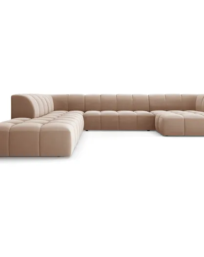 Canapé d'angle gauche Panoramique Modulable En Velours Adams 7 Places beige - 316x276x70 cm