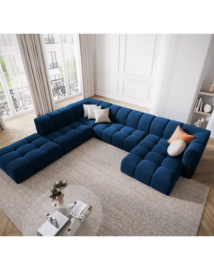Canapé d'angle gauche Panoramique Modulable En Velours Adams 7 Places bleu roi - 316x276x70 cm