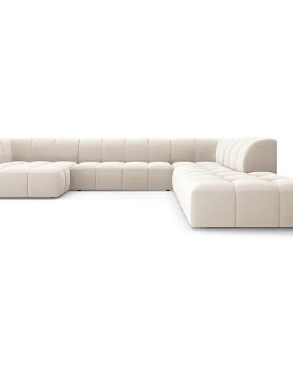 Canapé d'angle droit Panoramique Modulable En Velours Adams 7 Places beige clair - 316x276x70 cm
