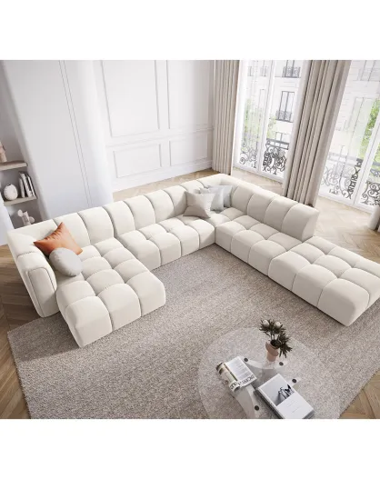 Canapé D'Angle Droit Panoramique Modulable Arden 6 Places beige - 330x238x70 cm
