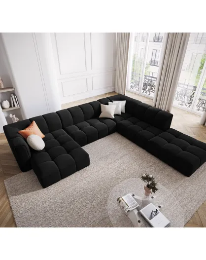 Canapé d'angle droit Panoramique Modulable En Velours Adams 7 Places noir - 316x276x70 cm