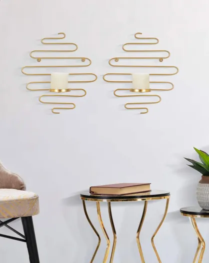 2 Bougeoirs muraux Alid dorés - 33x10x34 cm