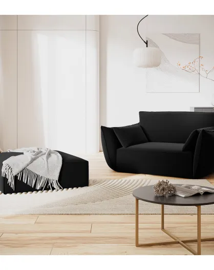 Pouf Velours Vanda noir - 100x80x36 cm