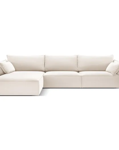 Canapé d'angle gauche Velours Vanda 4 Places beige clair - 300x166x85 cm