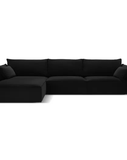 Canapé d'angle gauche Velours Vanda 4 Places noir - 300x166x85 cm
