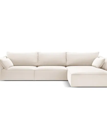 Canapé d'angle droit Velours Vanda 4 Places beige clair - 300x166x85 cm