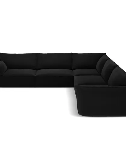 Canapé d'angle Symétrique en Velours Vanda 7 Places noir - 286x286x85 cm
