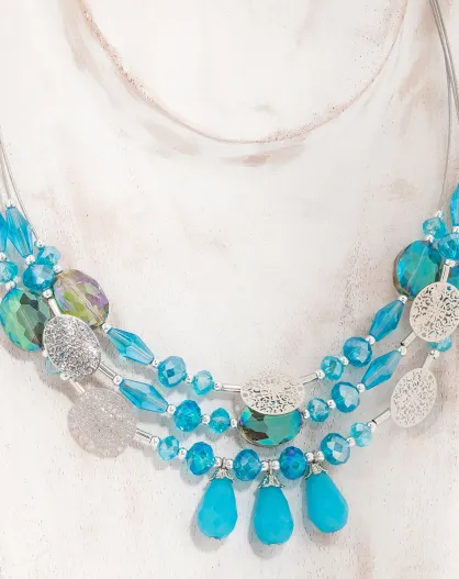Collier Thena argenté/bleu turquoise