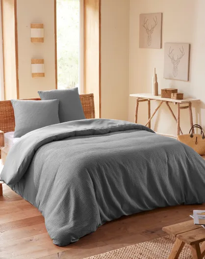 Parure housse de couette en nid d'abeille ardoise