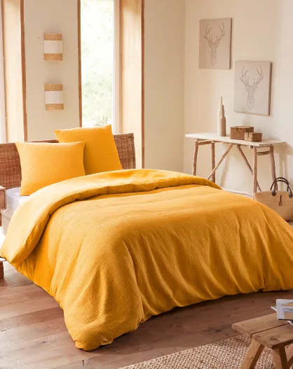 Parure housse de couette en nid d'abeille curry