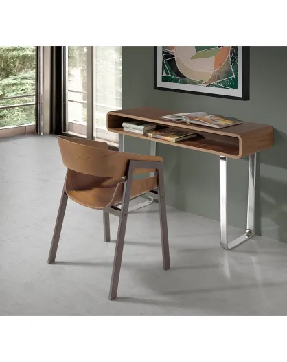 Console en bois plaqué sur pieds en acier inoxydable noyer/argenté - 120x39x75 cm