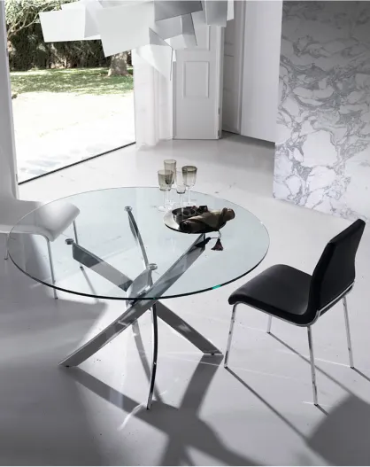 Table de salle à manger avec plateau en verre trempé transparent/argenté - D.130x75 cm