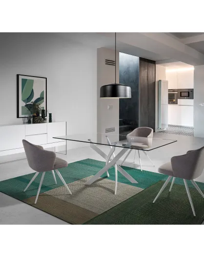 Table de salle à manger avec plateau en verre trempé 6 places transparent/blanc - 150x95x75 cm