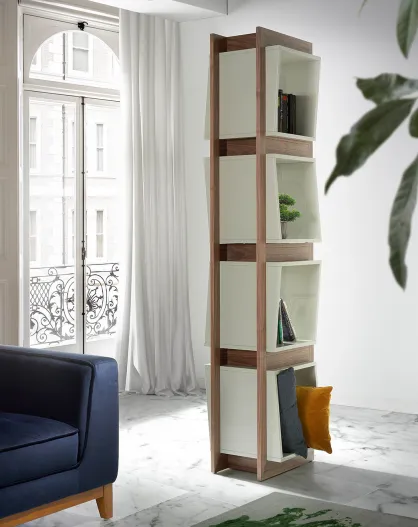 Etagère colonne avec cubes laqués noyer/gris - 50x41x200 cm