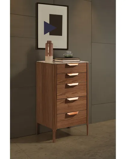 Chiffonnier avec plateau effet marbre noyer/blanc/gris/cuivre - 60x45x107 cm