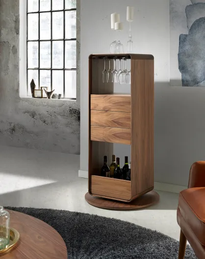 Meuble bar pivotant avec 3 tiroirs noyer - 43x40x128 cm