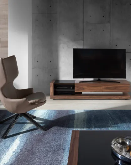 Meuble TV avec tiroirs noyer/transparent - 188x45x39 cm