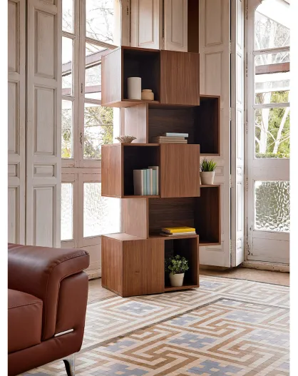 Bibliothèque destructurée 3 portes noyer - 85x40x181 cm