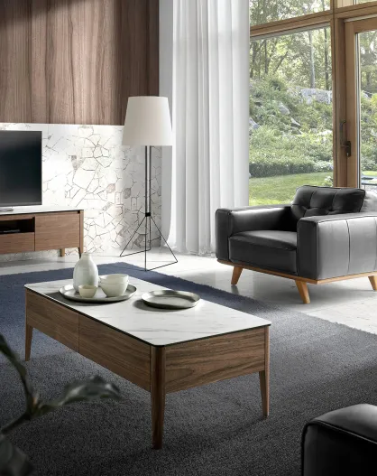 Fauteuil en cuir et pieds en noyer noir/noyer - 112x95x78 cm
