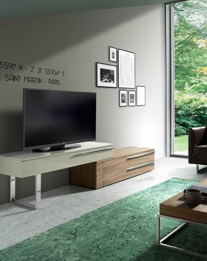 Meuble TV double laqué noyer/gris perle brillant - 152x45x53 cm