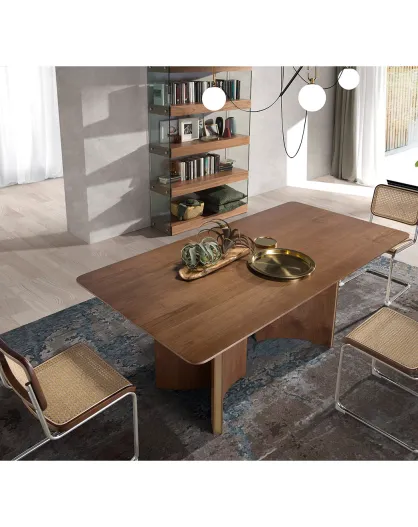 Table de salle à manger rectangulaire noyer/doré - 200x100x76 cm