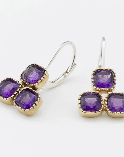 Boucles d'oreilles en Argent, Laiton & Améthyste violette