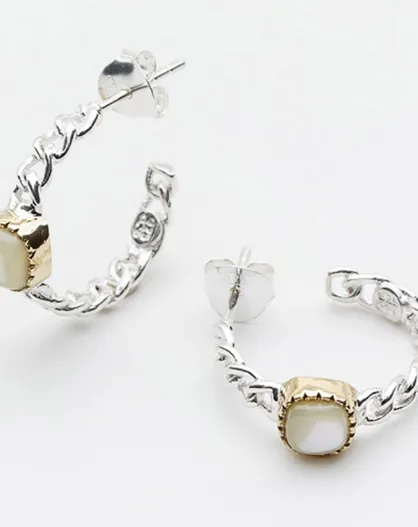 Boucles d'oreilles en Argent, Laiton & Nacre blanche