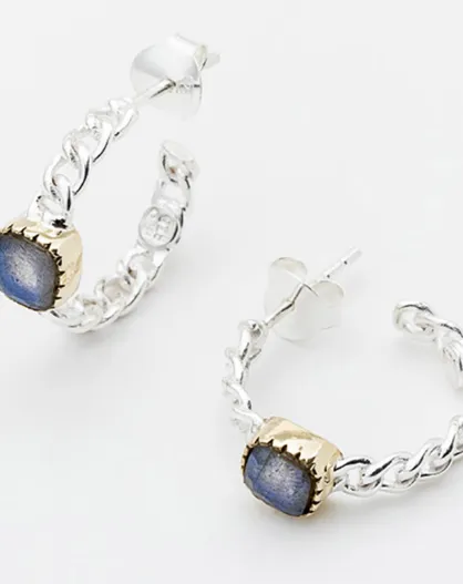 Boucles d'Oreilles en Argent, Laiton & Labradorite