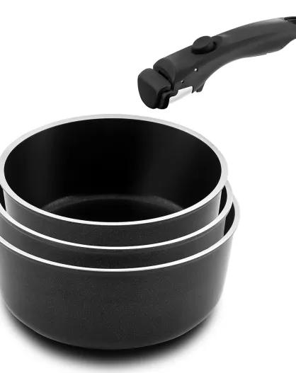 3 Casseroles induction + 1 poignée Arom noires - D. 16/18/20 cm