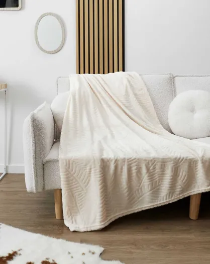 Plaid flanelle embossé crème - 150x200 cm
