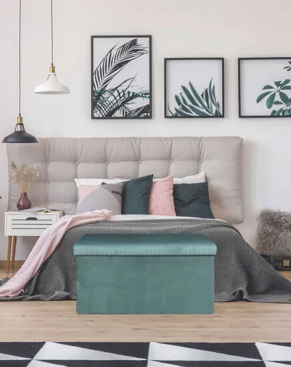 Coffre banc pliable velours cotelé Giulia bleu canard - 77x38x38 cm