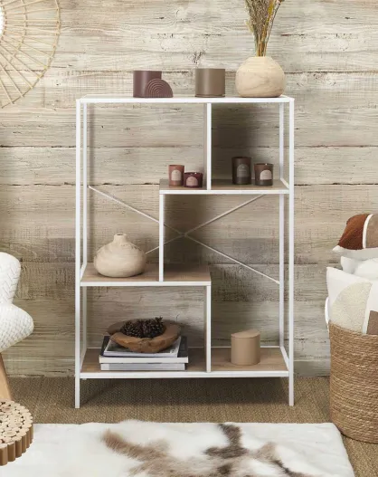 Étagère en bois et métal bois/blanc - 60x148x32.5 cm