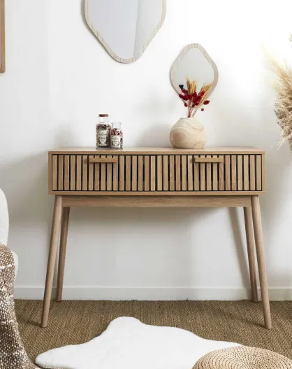 Table console pliable Edi noir/hêtre - 103x76x75 cm