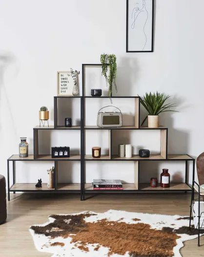 Etagère escalier Edison marron/noir - 120x146x30 cm