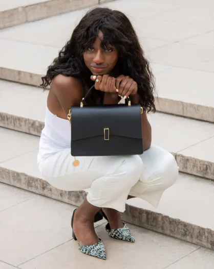 Sac à main en Cuir Mini Emma noir - 21x16x8 cm