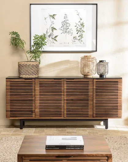 Buffet en bois de manguier ajourées alix bois - 175x46x70 cm