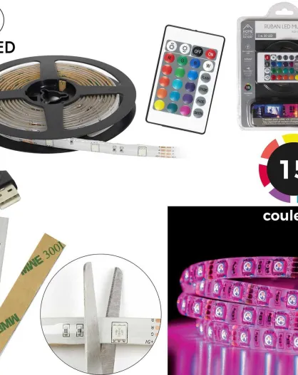 Ruban LED télécommandé transparent - 111x1x0.5 cm