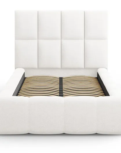 Lit coffre avec tête de lit Arendal beige clair - 200x200 cm