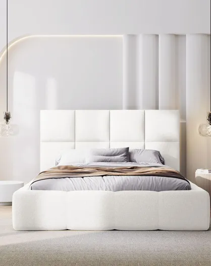 Lit coffre avec tête de lit Arendal gris clair - 200x200 cm
