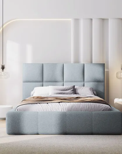 Lit coffre avec tête de lit Arendal gris clair - 200x200 cm