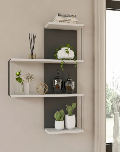 Etagère murale Cambel blanc/anthracite - 64x96x19 cm
