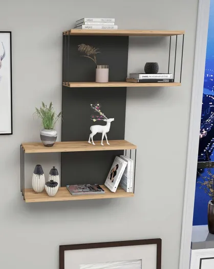 Étagère murale Destan anthracite/chêne - 65x96x19 cm